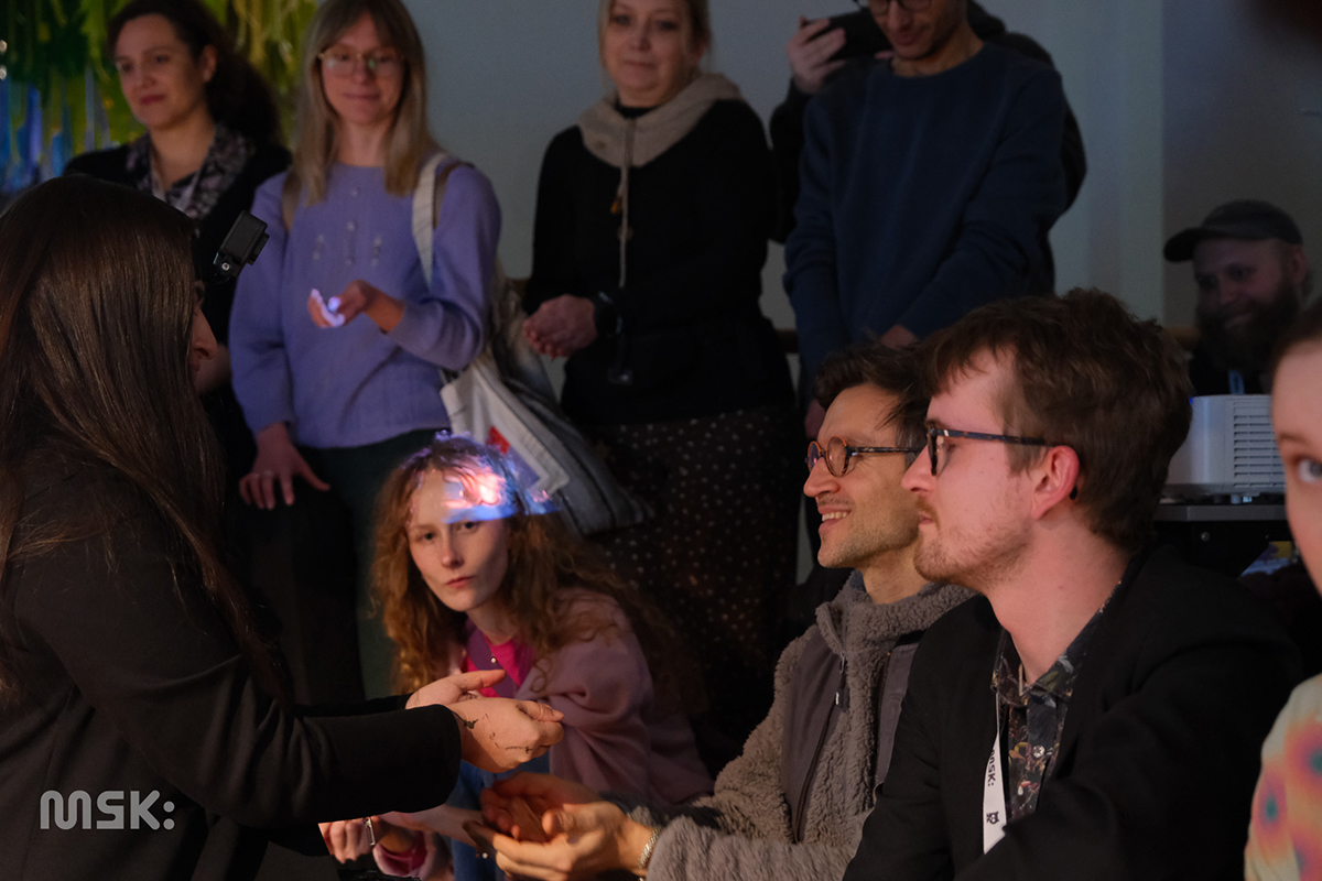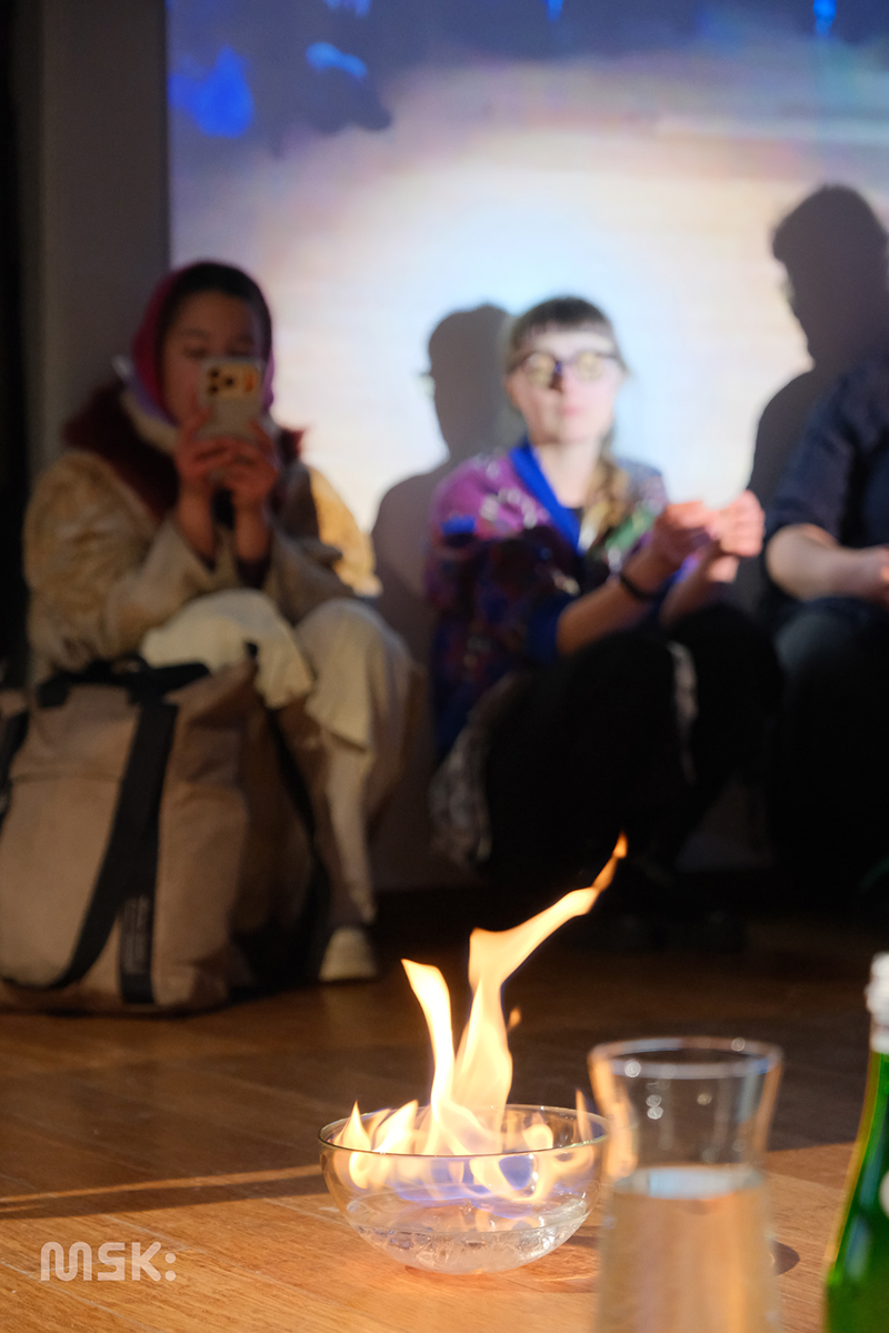 This setup allowed the audience to observe my actions directly or follow the camera feed. An important concept for me was liminality, which is the smooth transition from one state to another, such as from ice to water. I also evoked seemingly impossible phenomena, such as burning ice, and used paradoxical entertainment products like "sparklers" (commonly known in Polish as ‘cold fire’), whose name implies safe play despite the known risk of burns.