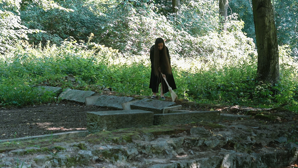This only abandoned and neglected place, near the Palace restored to its former glory by the daughters of its pre-war German owners, provoked me to a series of "gardening and performance" activities. They ended with an action during which, in the costume of "Priestess-Witch", I placed stones with the words in Polish WIESZ / NIE / WIERZ (know / don't / believe) on the foundations of the former chapel. The stones can be moved freely therefore changing the meaning of a sentence. The video documents the process of symbolic revitalization of the place and tells the story of the chapel.