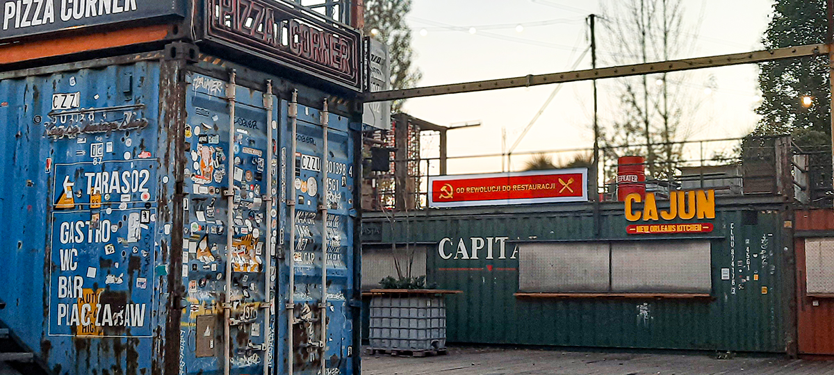 Transparent powieszony został na kontenerach 100czni na postindustrialnych terenach Stoczni Gdańskiej. 100cznia, jak możemy przeczytać na stronie przedsięwzięcia, to projekt łączący kontenerową architekturę, ofertę kulturalną oraz kuchnie z odległych zakątków kuli ziemskiej.
