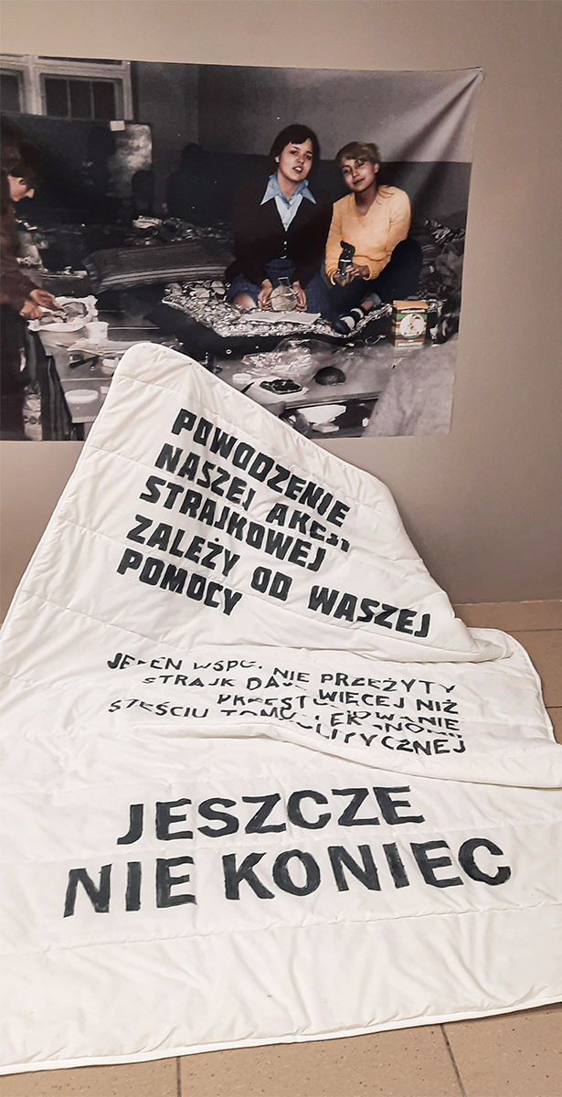 Fotografiom towarzyszyły ręcznie malowane kołdry z hasłami ze strajku studenckiego na UŁ, nawiązujące do kilkutygodniowej okupacji uniwersytetu.